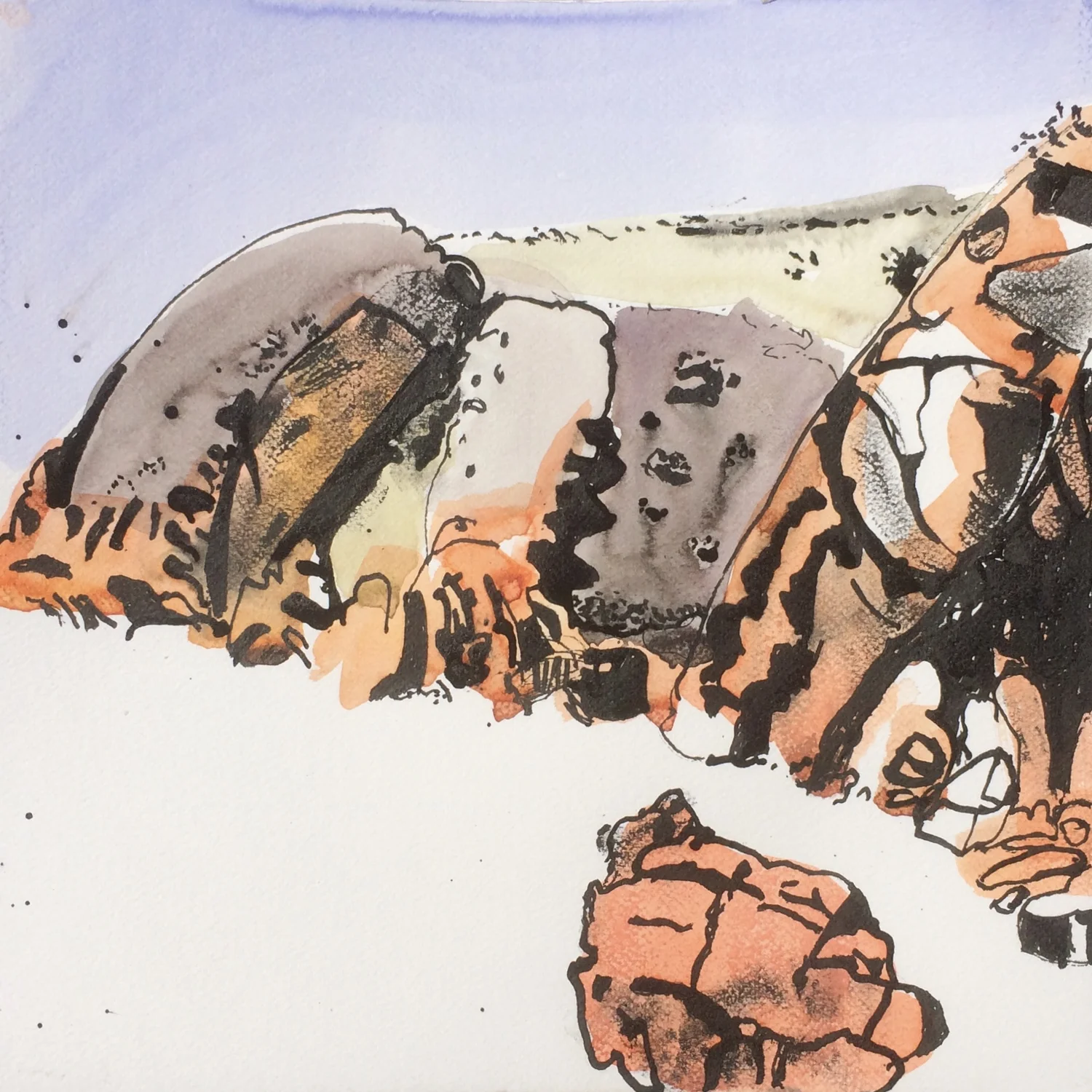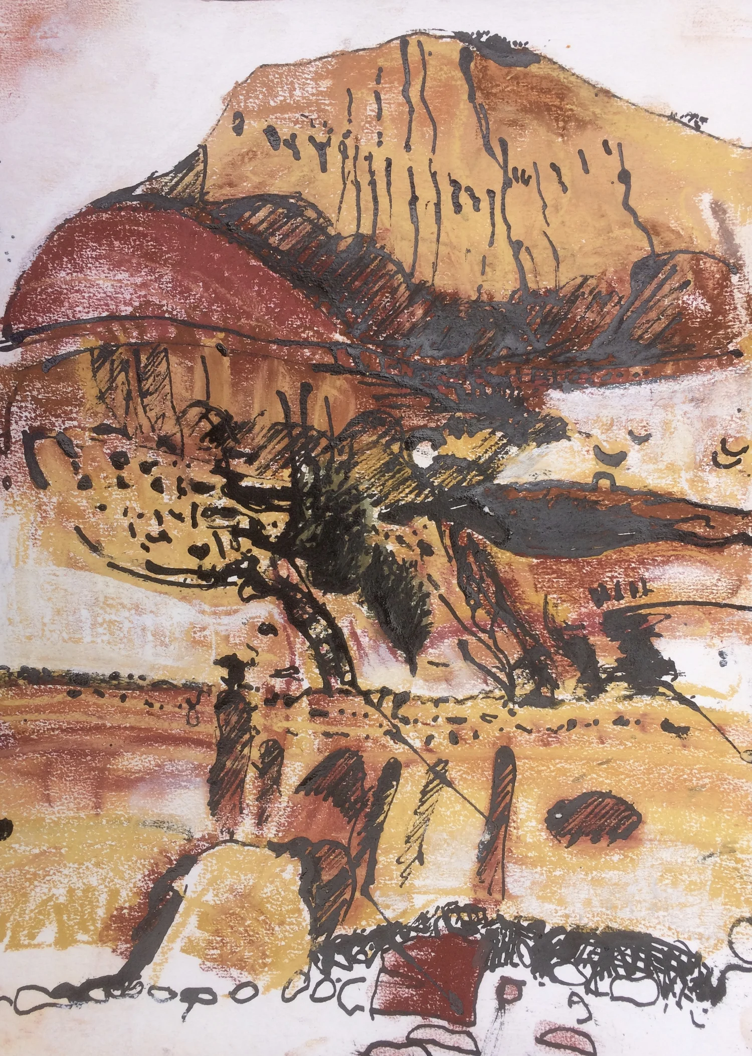 Big Rock Like a Dog's Head Next to Uluru, Sunset Mood